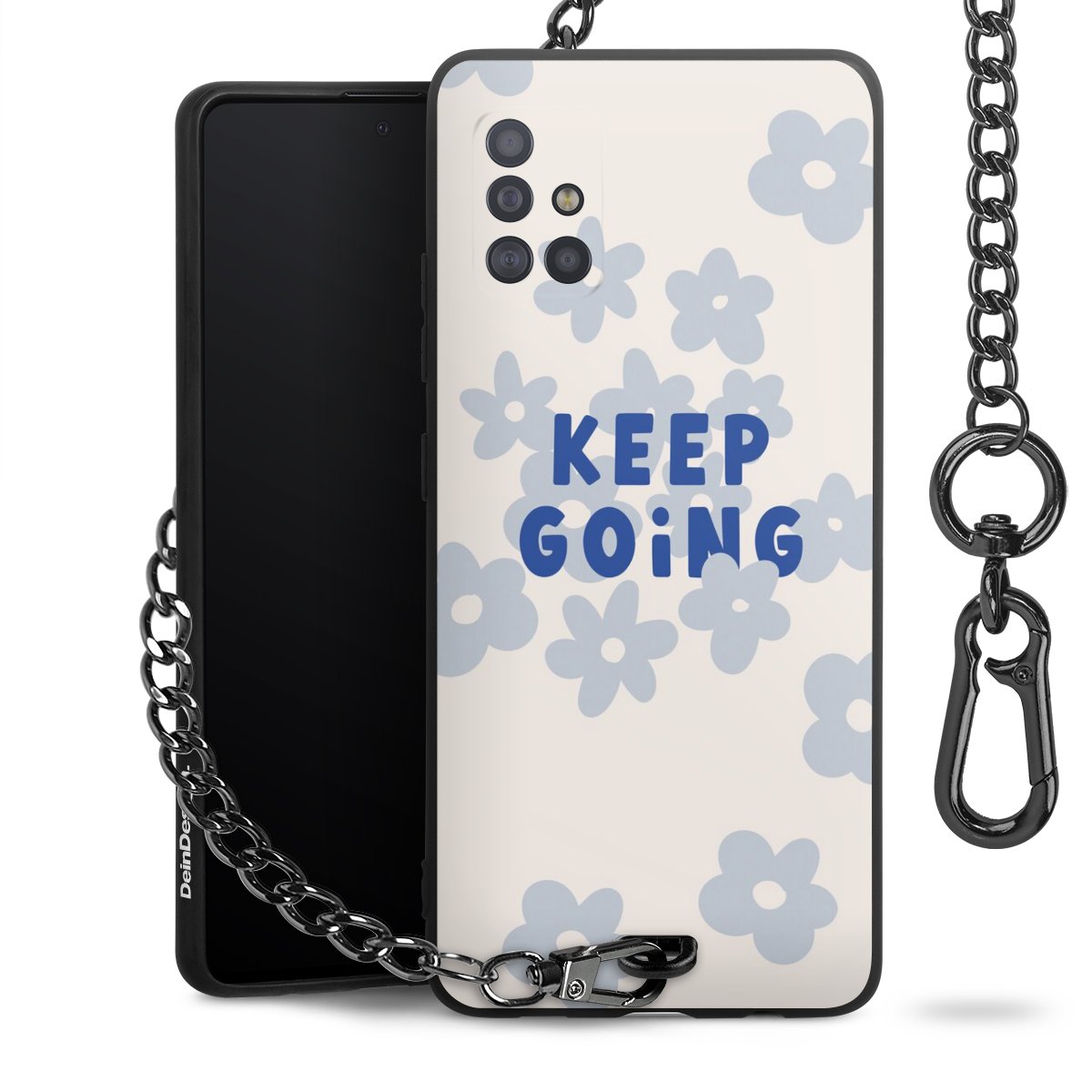 Die mattschwarze Silikon-Handyhülle besteht aus robustem TPU (thermoplastisches Polyurethan). Sie ist flexibel und schützt Dein Smartphone vor Stößen und Kratzern. Die Kette sowie der Karabinerhaken sind aus Metall in Gunmetal-Optik gefertigt. Für dieses Produkt kommen ausschließlich TÜV-geprüfte Materialien zum Einsatz.