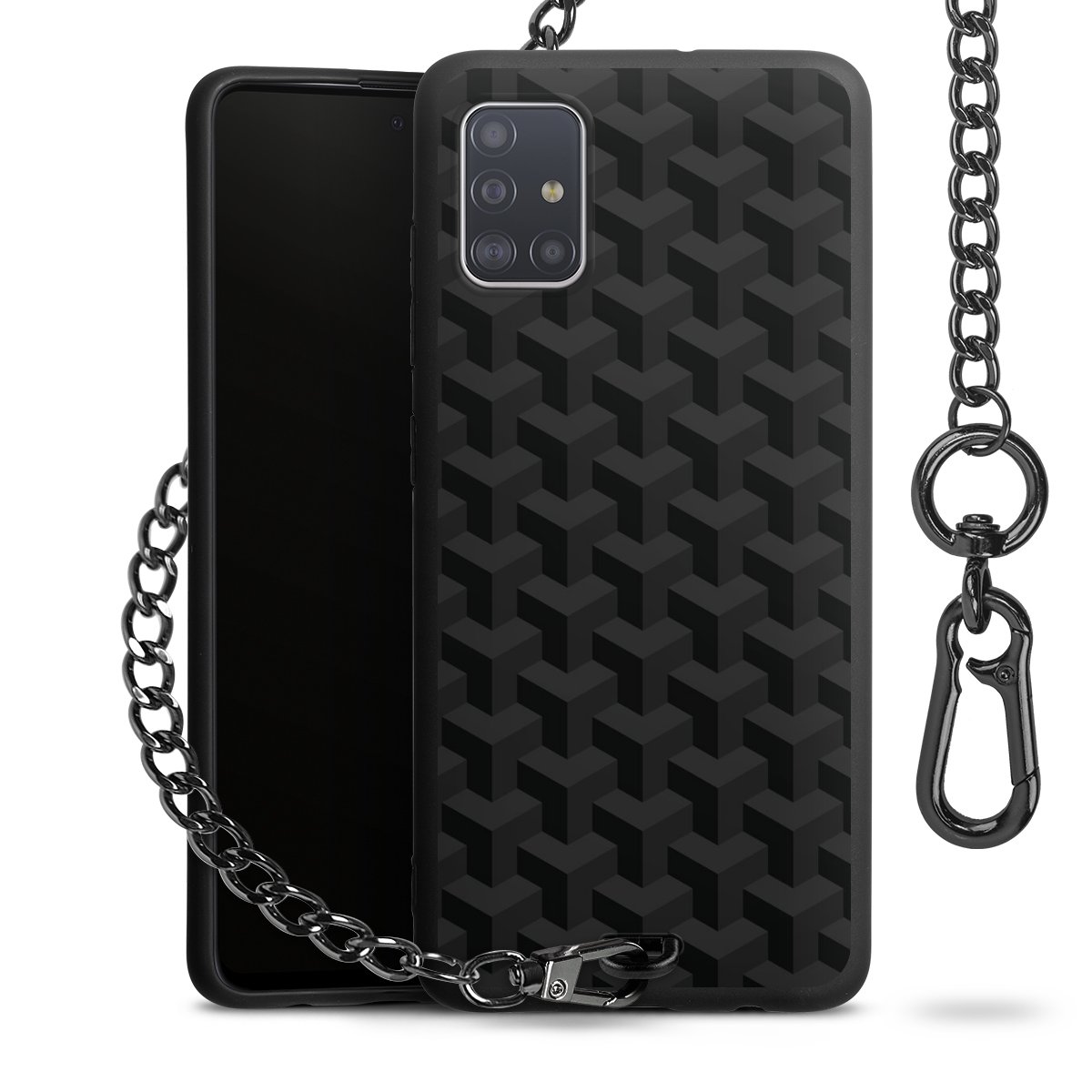 - Mattschwarze Handyhülle mit Metallkette