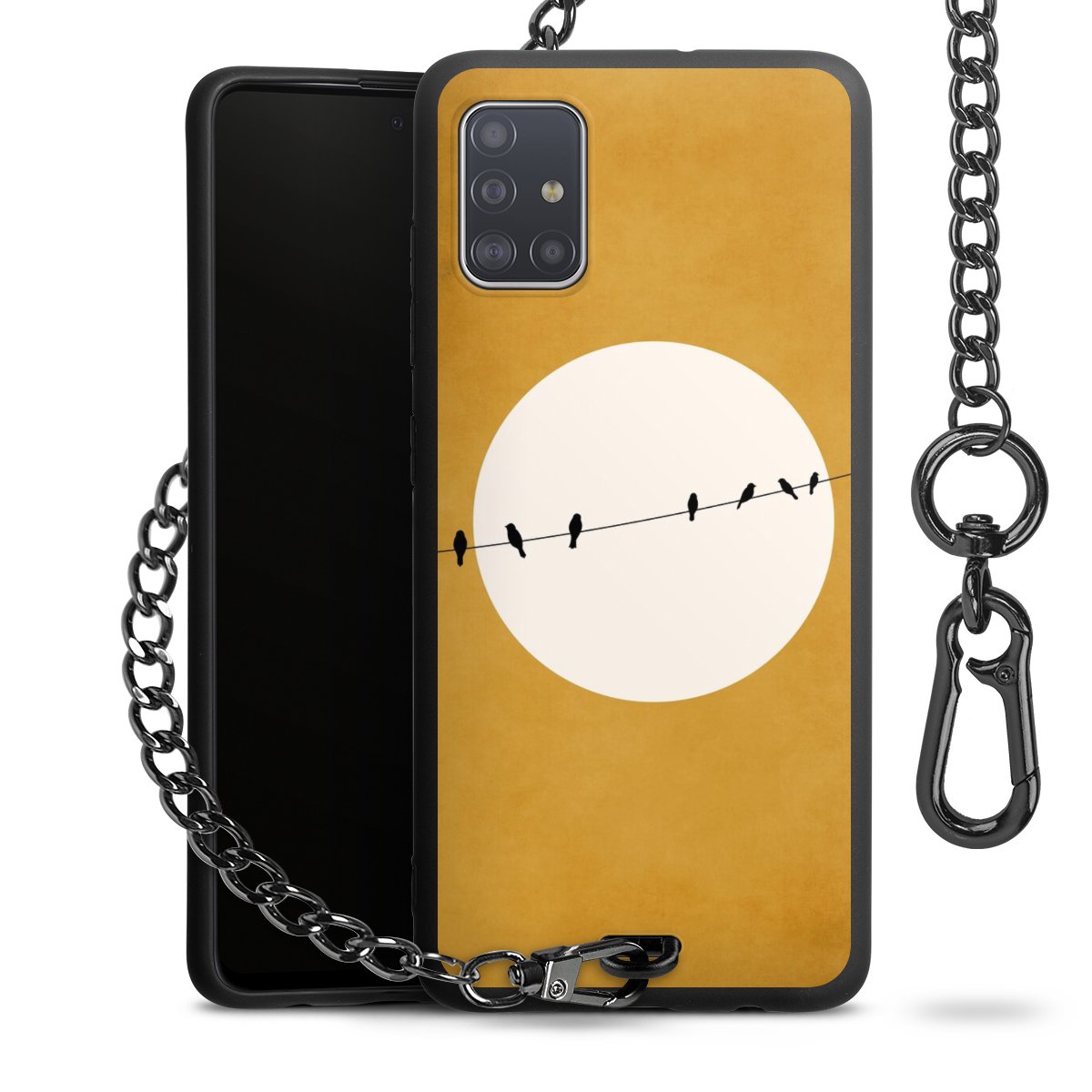 • Mattschwarze Handyhülle mit Metallkette