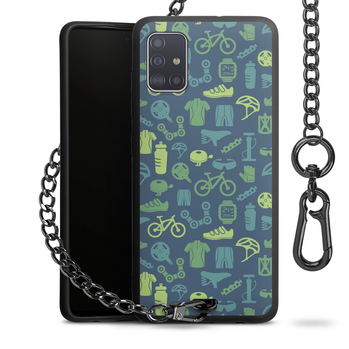 Die mattschwarze Silikon-Handyhülle besteht aus robustem TPU (thermoplastisches Polyurethan). Sie ist flexibel und schützt Dein Smartphone vor Stößen und Kratzern. Die Kette sowie der Karabinerhaken sind aus Metall in Gunmetal-Optik gefertigt. Für dieses Produkt kommen ausschließlich TÜV-geprüfte Materialien zum Einsatz.