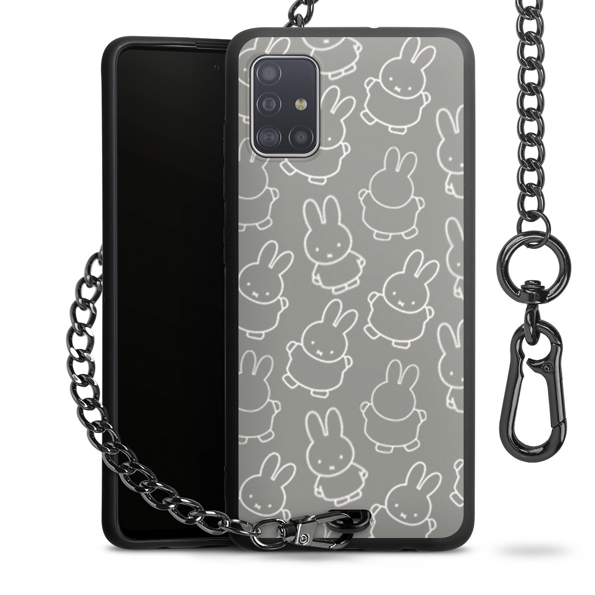 Die Handyhülle verfügt über eine mittig am unteren Rand platzierte Öse, an der die Metallkette stabil befestigt ist. Bestelle die Hülle einfach für Dein Smartphone-Modell, dann passt sie wie angegossen und Du brauchst sie bloß einmal anzudrücken. Handy in die Tasche, Karabiner an den Hosenbund – schon kann die Party starten.