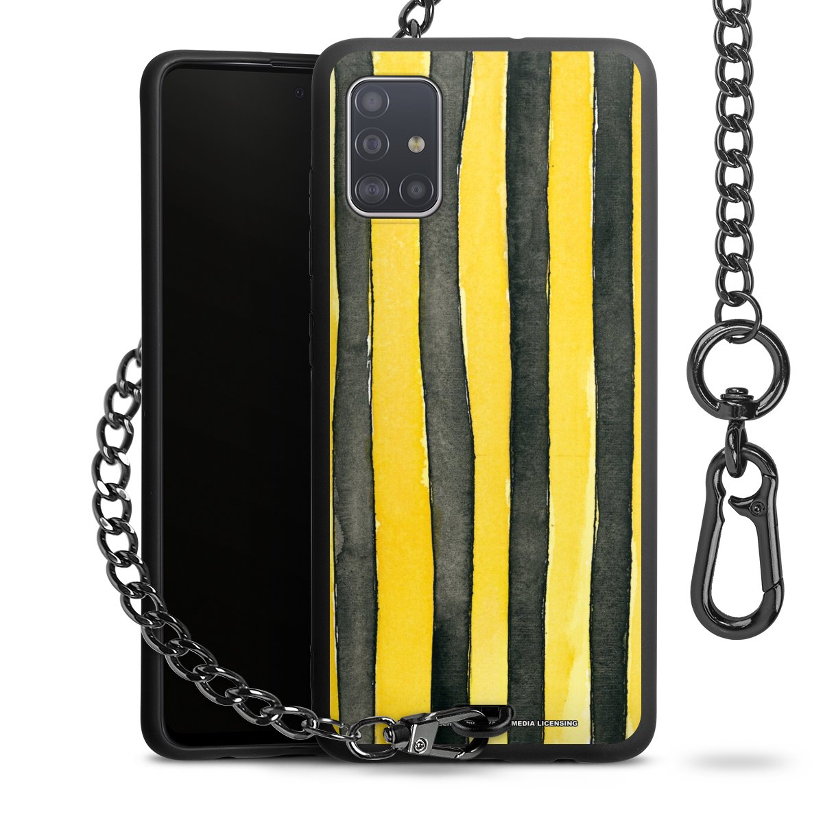 Die mattschwarze Silikon-Handyhülle besteht aus robustem TPU (thermoplastisches Polyurethan). Sie ist flexibel und schützt Dein Smartphone vor Stößen und Kratzern. Die Kette sowie der Karabinerhaken sind aus Metall in Gunmetal-Optik gefertigt. Für dieses Produkt kommen ausschließlich TÜV-geprüfte Materialien zum Einsatz.