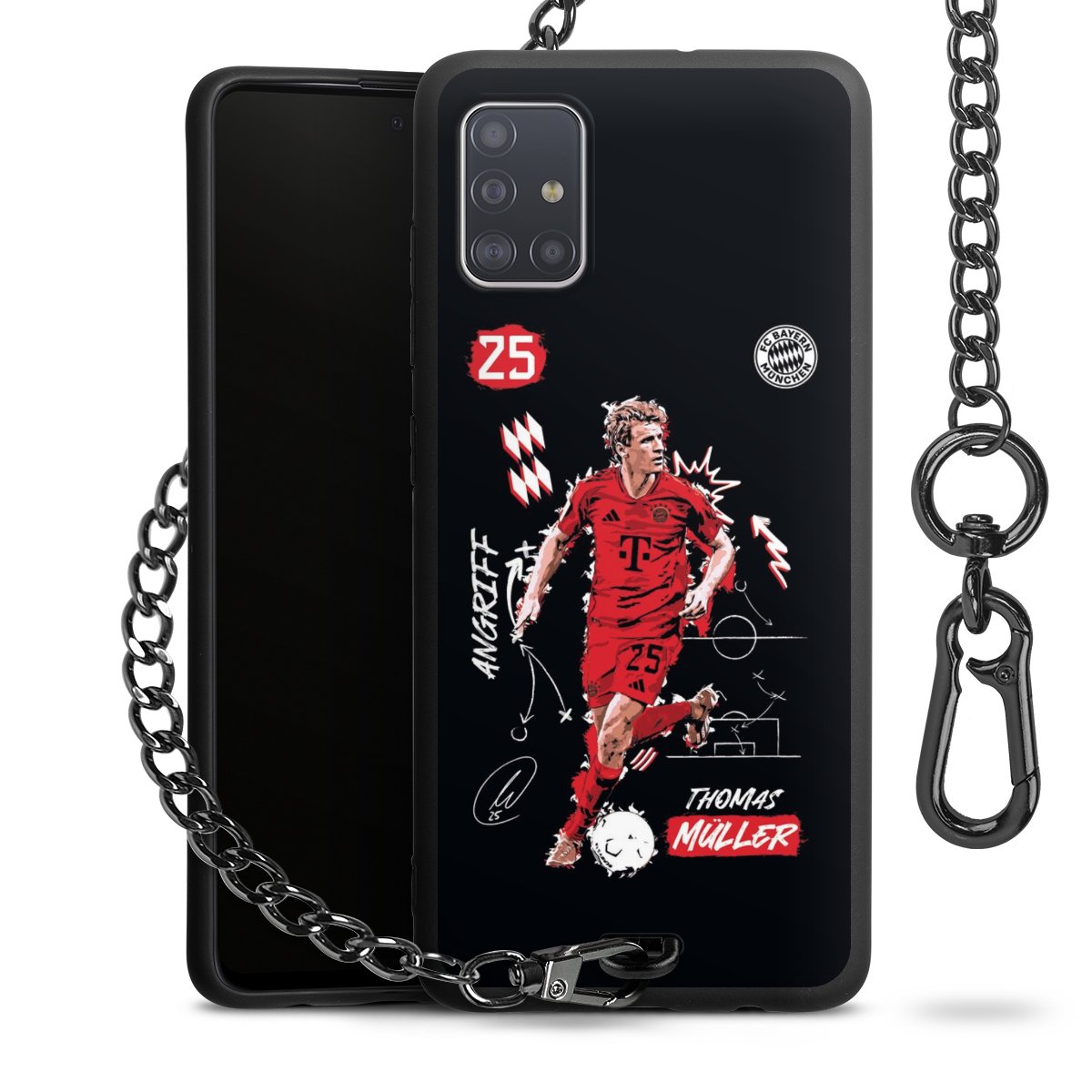 • Mattschwarze Handyhülle mit Metallkette