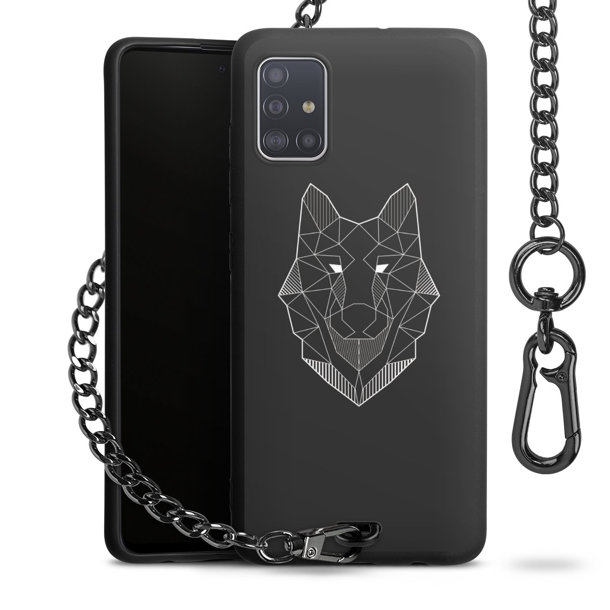 - Mattschwarze Handyhülle mit Metallkette