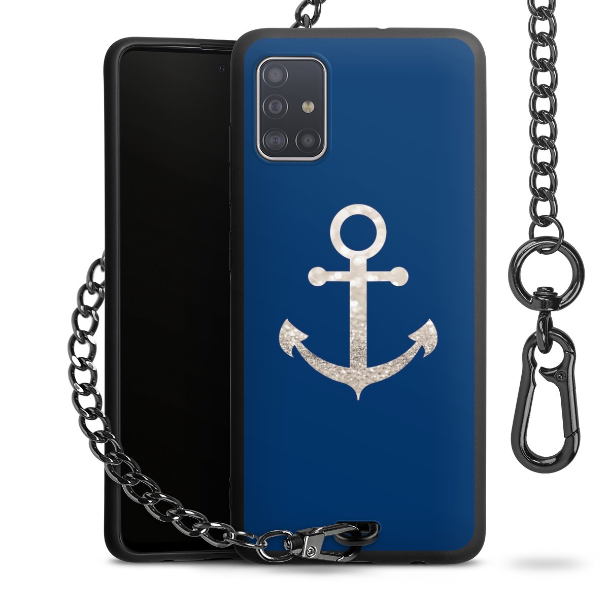 - Mattschwarze Handyhülle mit Metallkette
