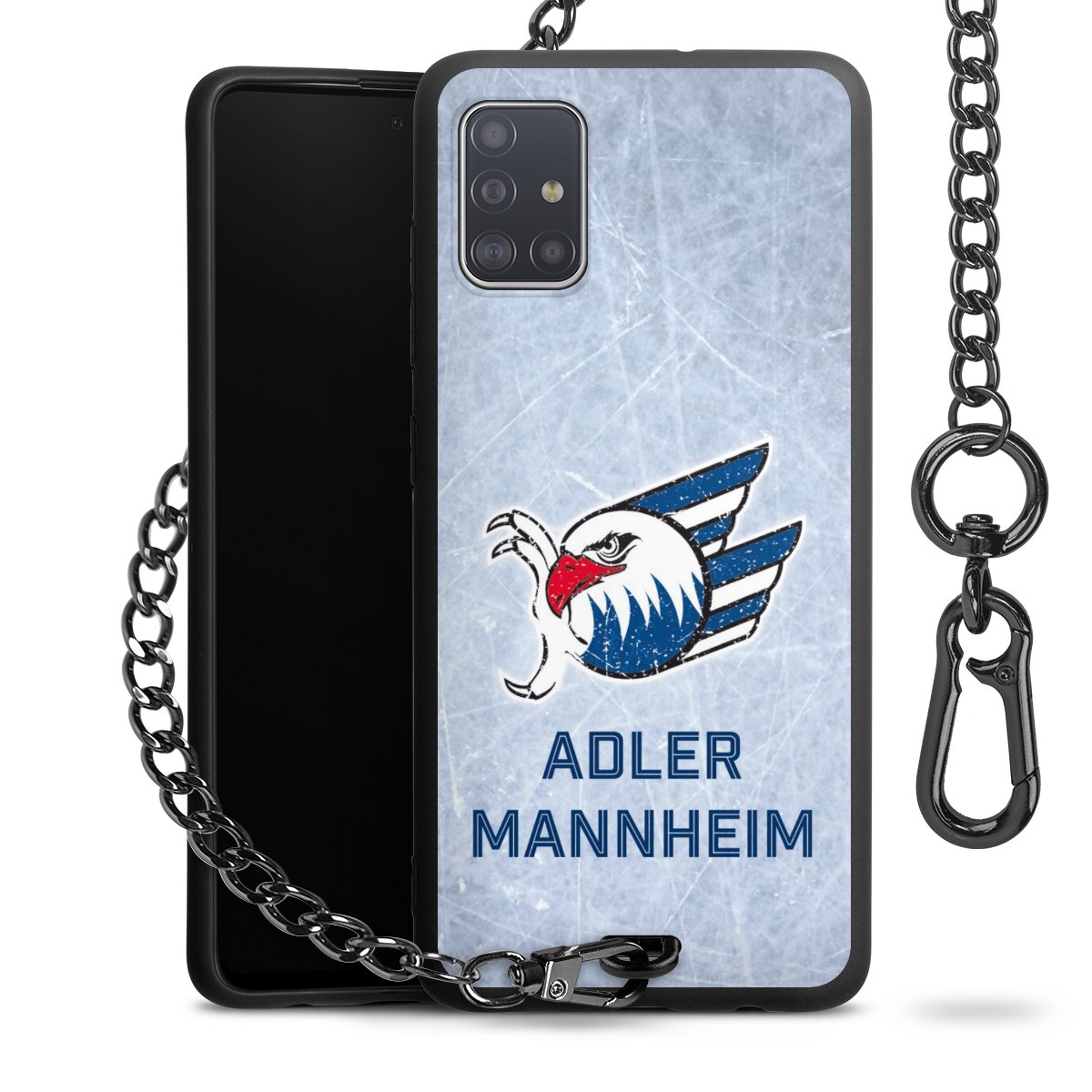Die mattschwarze Silikon-Handyhülle besteht aus robustem TPU (thermoplastisches Polyurethan). Sie ist flexibel und schützt Dein Smartphone vor Stößen und Kratzern. Die Kette sowie der Karabinerhaken sind aus Metall in Gunmetal-Optik gefertigt. Für dieses Produkt kommen ausschließlich TÜV-geprüfte Materialien zum Einsatz.