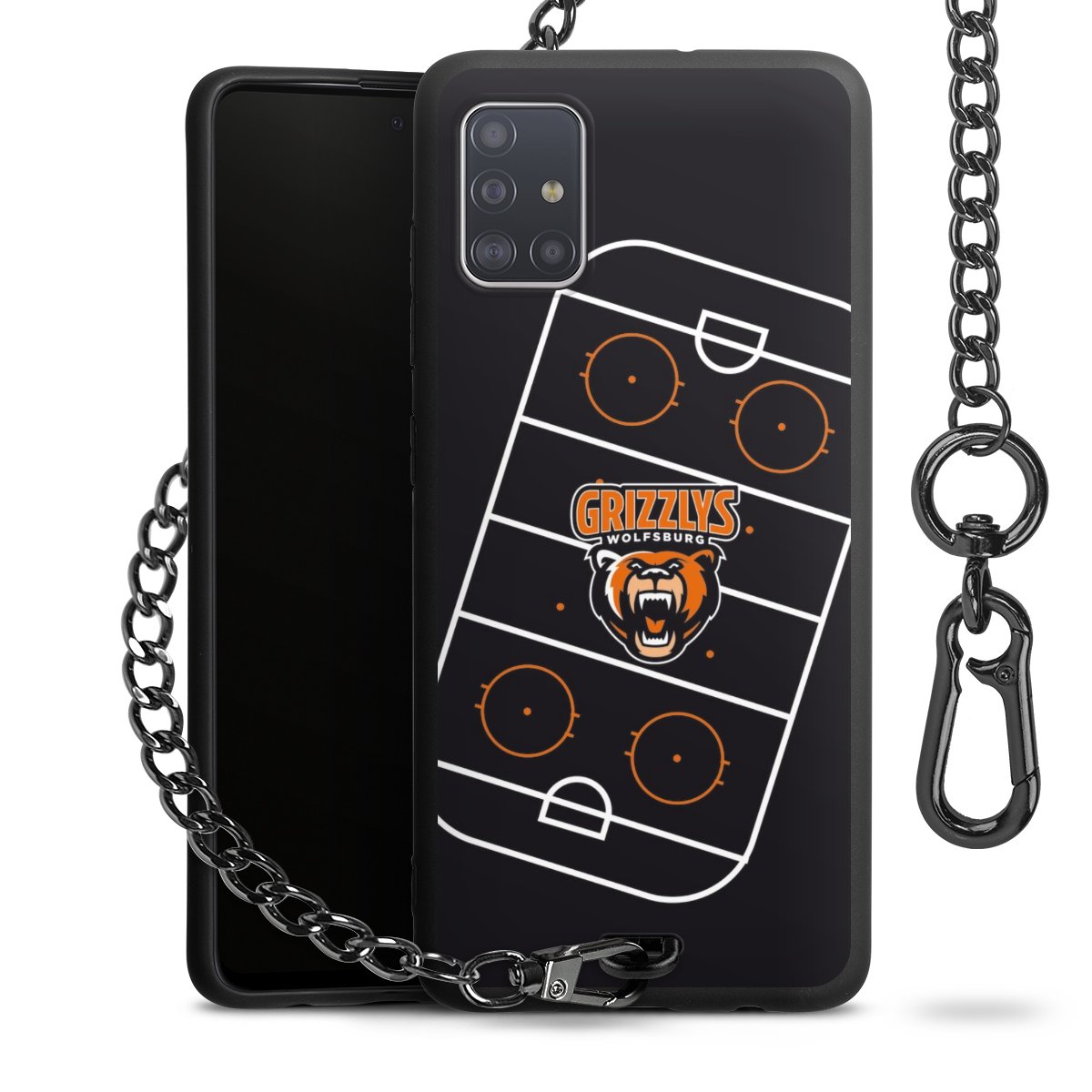 Die mattschwarze Silikon-Handyhülle besteht aus robustem TPU (thermoplastisches Polyurethan). Sie ist flexibel und schützt Dein Smartphone vor Stößen und Kratzern. Die Kette sowie der Karabinerhaken sind aus Metall in Gunmetal-Optik gefertigt. Für dieses Produkt kommen ausschließlich TÜV-geprüfte Materialien zum Einsatz.