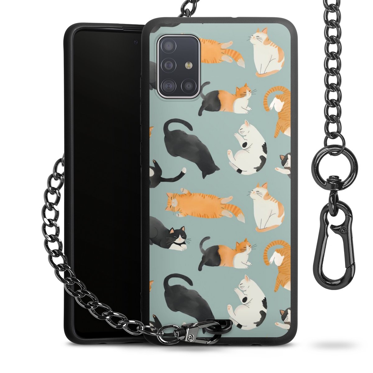 • Mattschwarze Handyhülle mit Metallkette