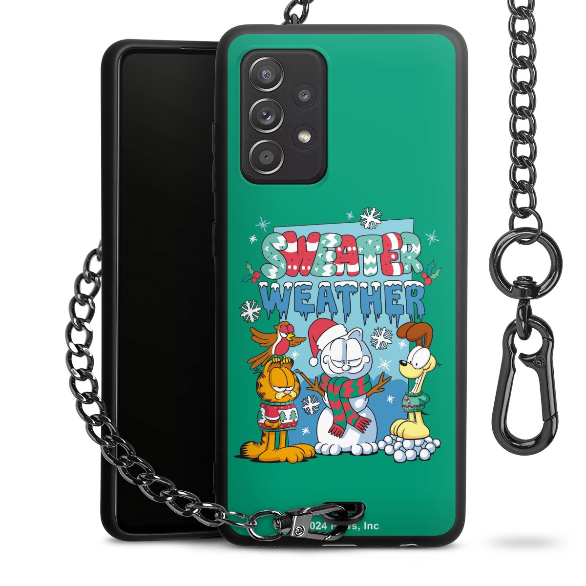 - Mattschwarze Handyhülle mit Metallkette