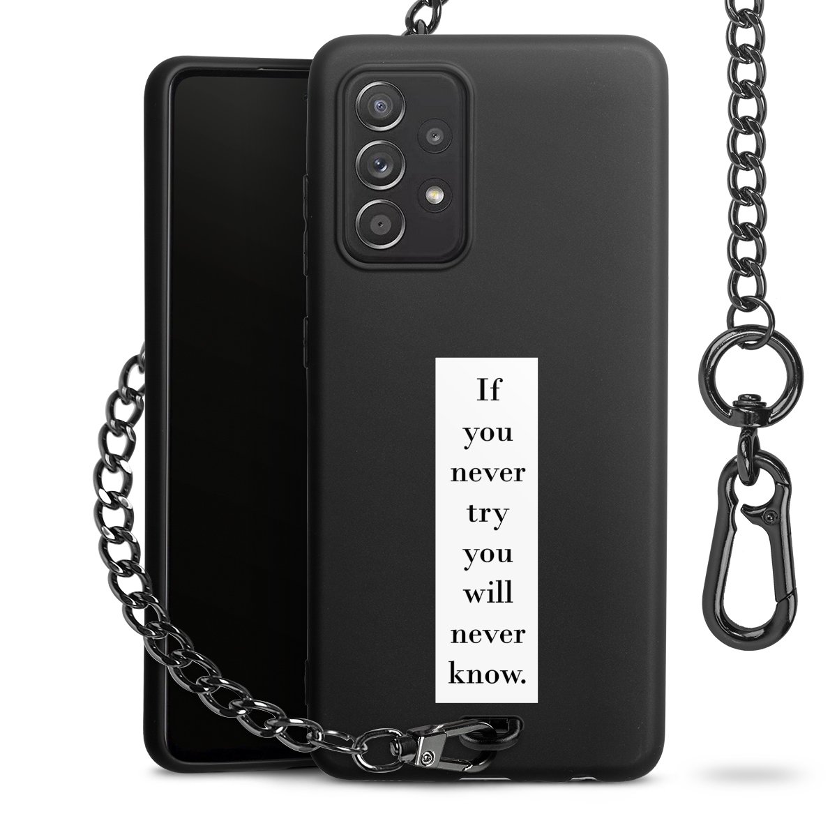 - Mattschwarze Handyhülle mit Metallkette