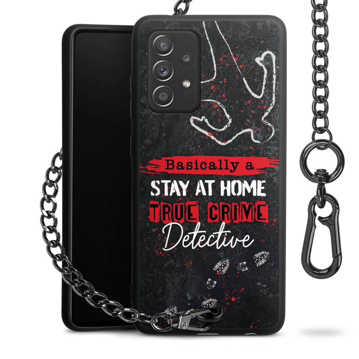 Die mattschwarze Silikon-Handyhülle besteht aus robustem TPU (thermoplastisches Polyurethan). Sie ist flexibel und schützt Dein Smartphone vor Stößen und Kratzern. Die Kette sowie der Karabinerhaken sind aus Metall in Gunmetal-Optik gefertigt. Für dieses Produkt kommen ausschließlich TÜV-geprüfte Materialien zum Einsatz.