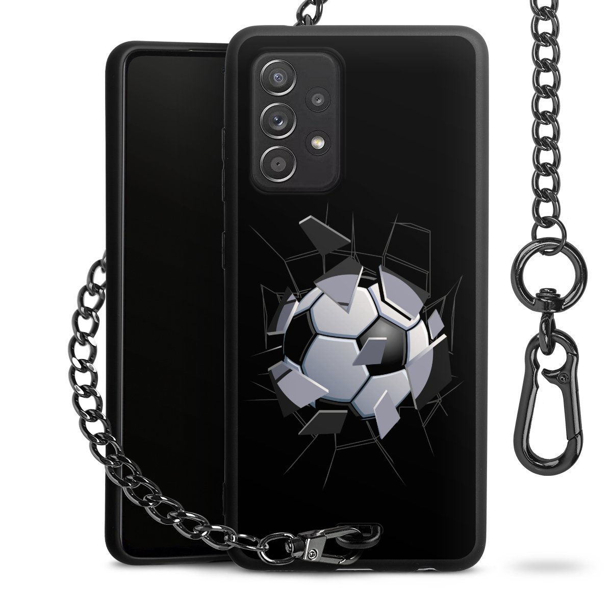 - Mattschwarze Handyhülle mit Metallkette
