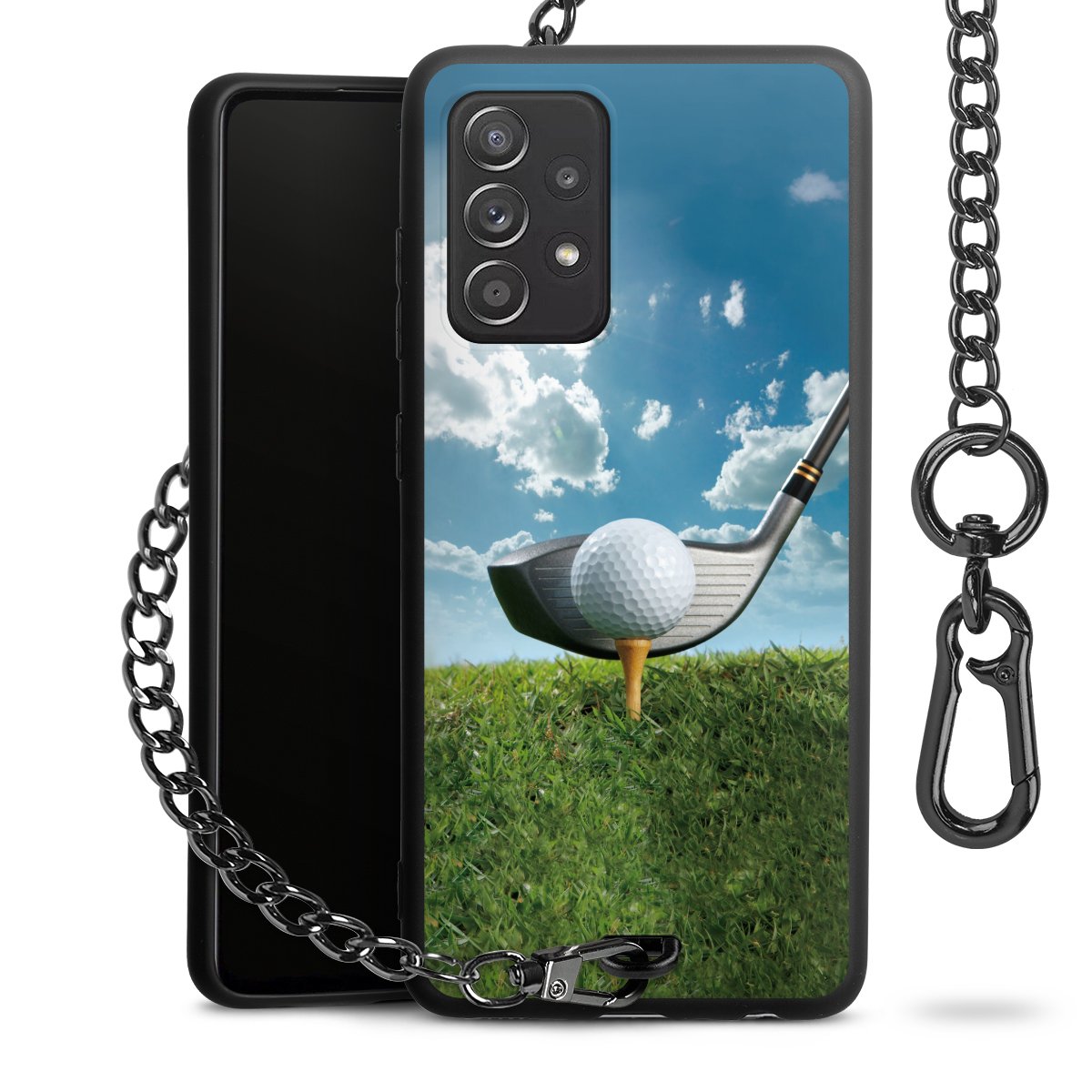 • Mattschwarze Handyhülle mit Metallkette