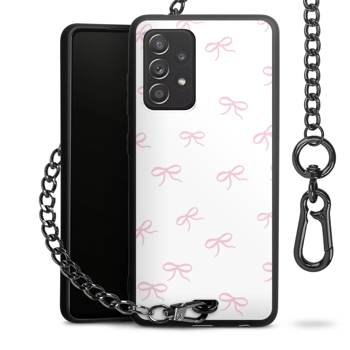 - Mattschwarze Handyhülle mit Metallkette