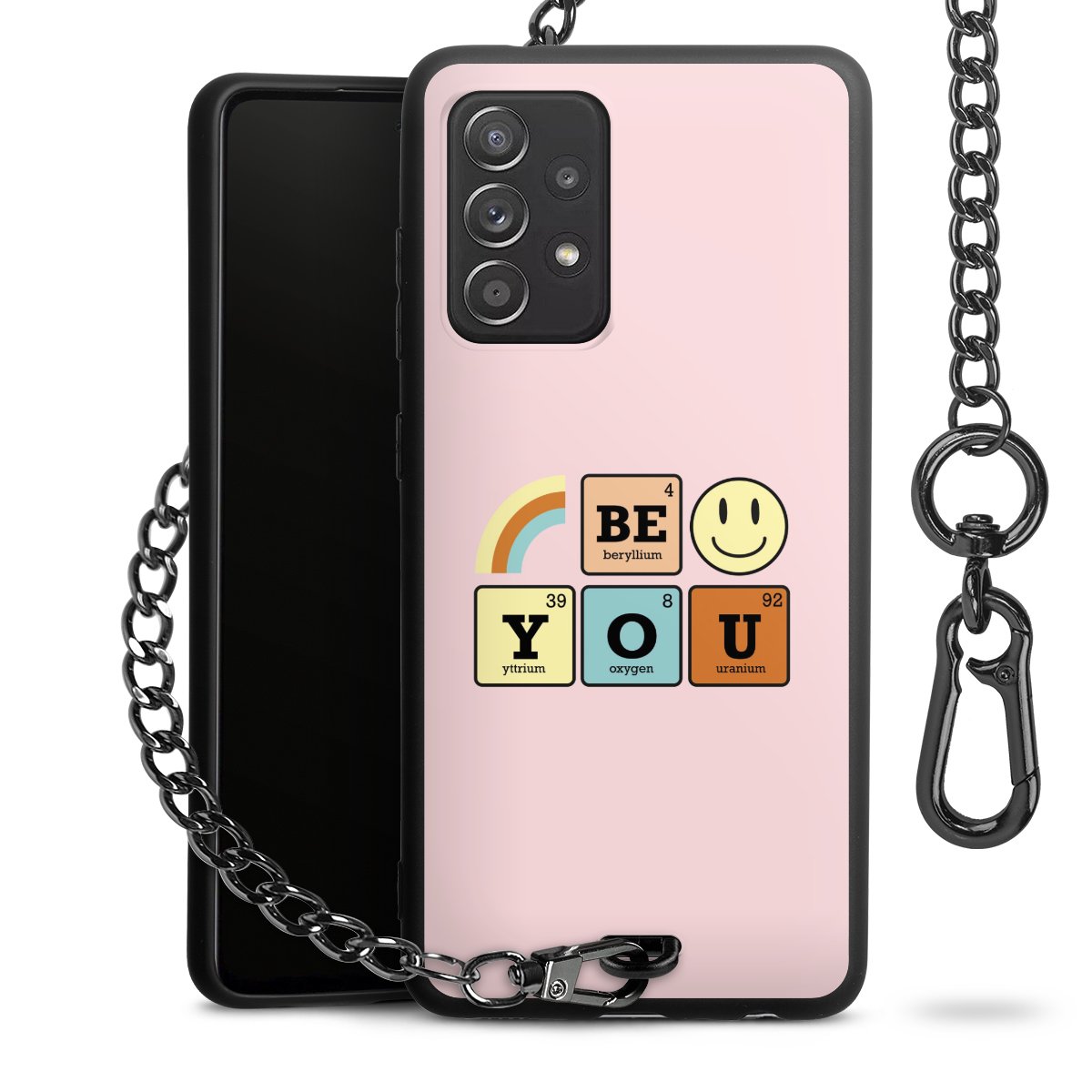 Die mattschwarze Silikon-Handyhülle besteht aus robustem TPU (thermoplastisches Polyurethan). Sie ist flexibel und schützt Dein Smartphone vor Stößen und Kratzern. Die Kette sowie der Karabinerhaken sind aus Metall in Gunmetal-Optik gefertigt. Für dieses Produkt kommen ausschließlich TÜV-geprüfte Materialien zum Einsatz.