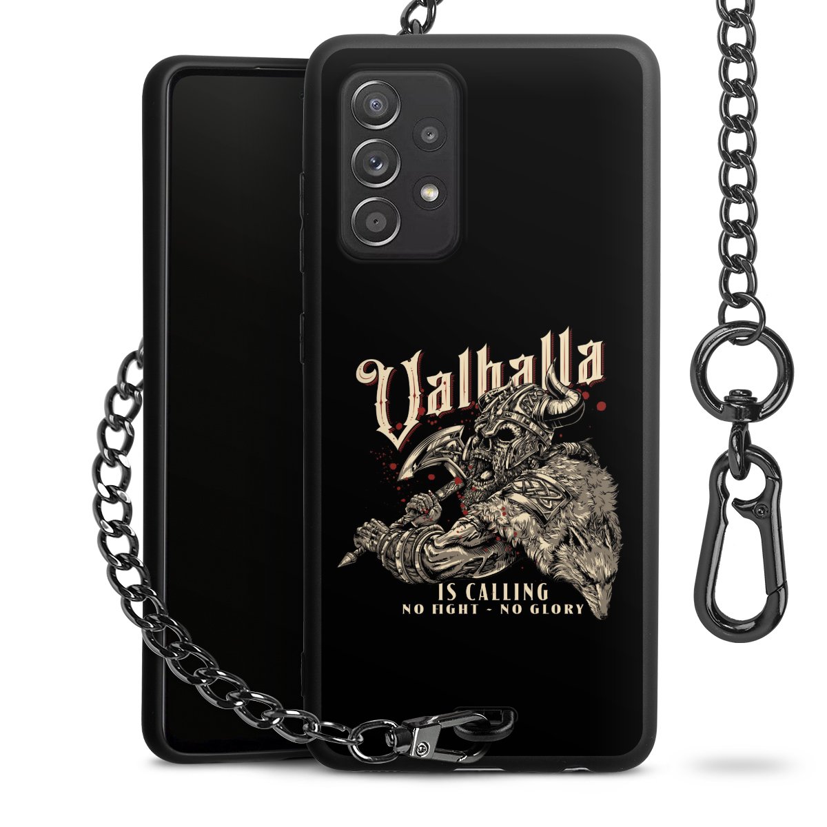 • Mattschwarze Handyhülle mit Metallkette