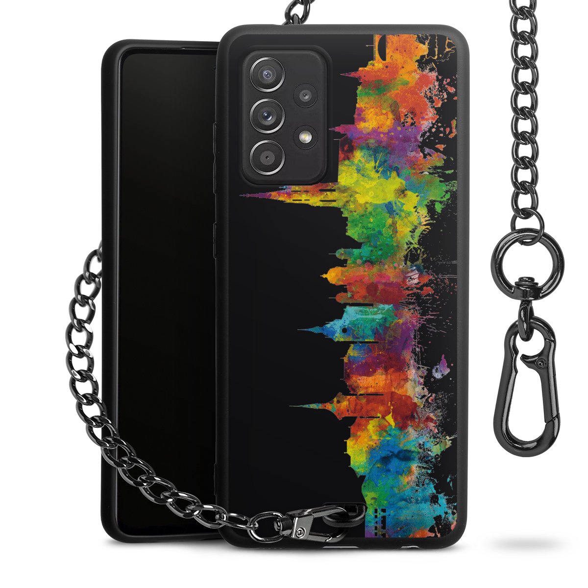 • Mattschwarze Handyhülle mit Metallkette