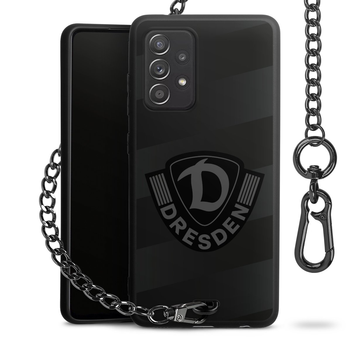 • Mattschwarze Handyhülle mit Metallkette