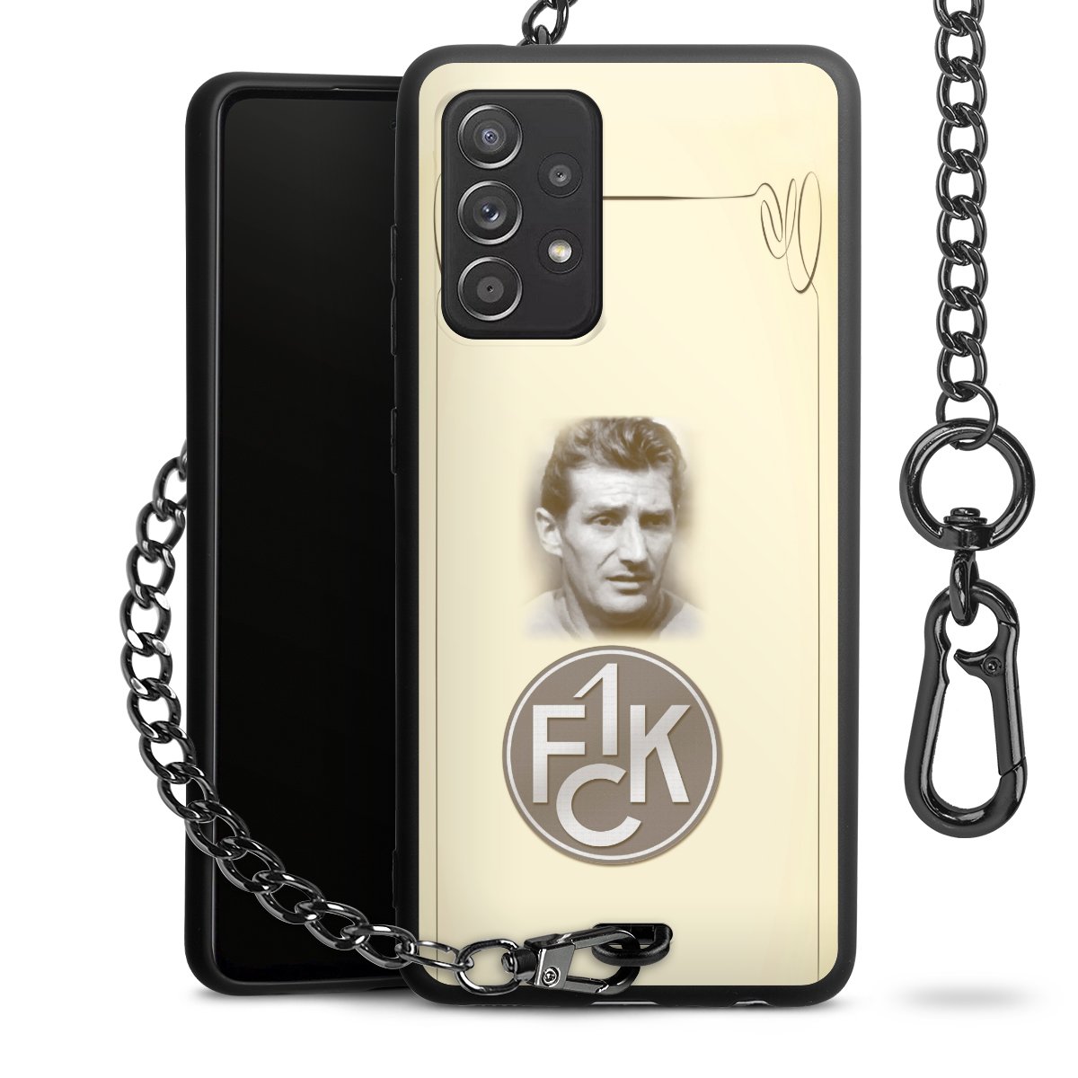 Die Handyhülle verfügt über eine mittig am unteren Rand platzierte Öse, an der die Metallkette stabil befestigt ist. Bestelle die Hülle einfach für Dein Smartphone-Modell, dann passt sie wie angegossen und Du brauchst sie bloß einmal anzudrücken. Handy in die Tasche, Karabiner an den Hosenbund – schon kann die Party starten.