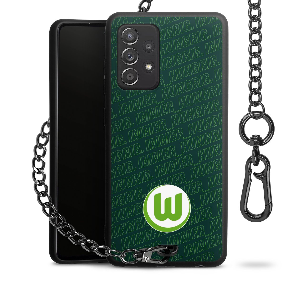 Die mattschwarze Silikon-Handyhülle besteht aus robustem TPU (thermoplastisches Polyurethan). Sie ist flexibel und schützt Dein Smartphone vor Stößen und Kratzern. Die Kette sowie der Karabinerhaken sind aus Metall in Gunmetal-Optik gefertigt. Für dieses Produkt kommen ausschließlich TÜV-geprüfte Materialien zum Einsatz.