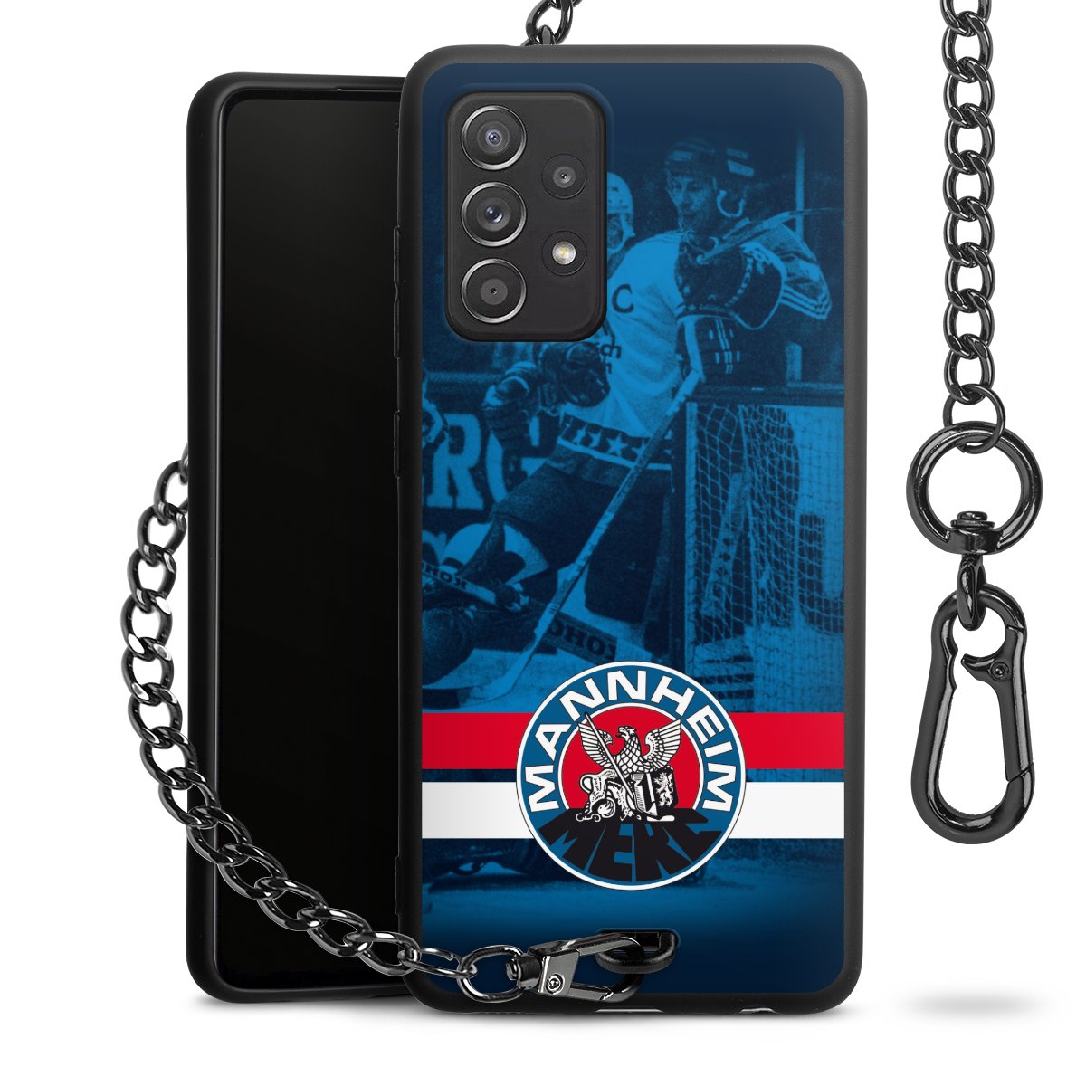 • Mattschwarze Handyhülle mit Metallkette