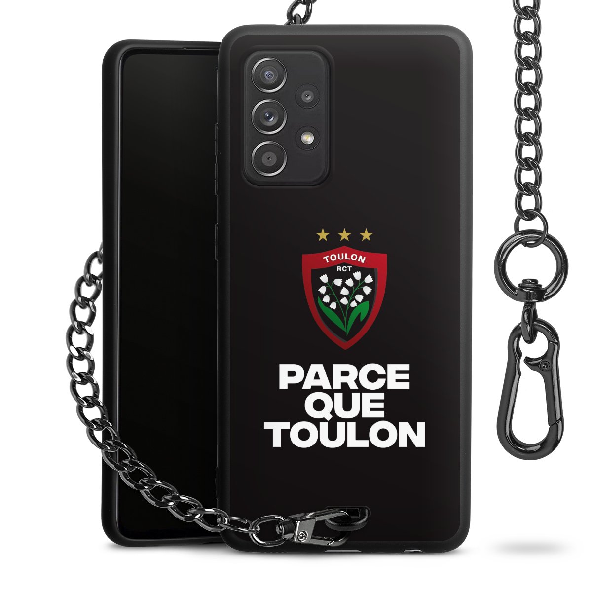- Mattschwarze Handyhülle mit Metallkette