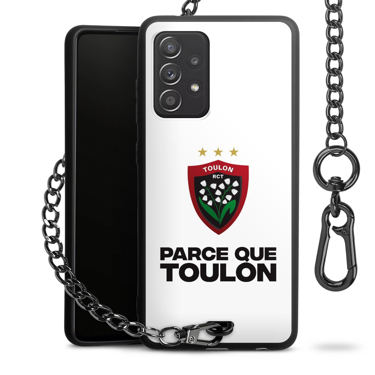 - Mattschwarze Handyhülle mit Metallkette