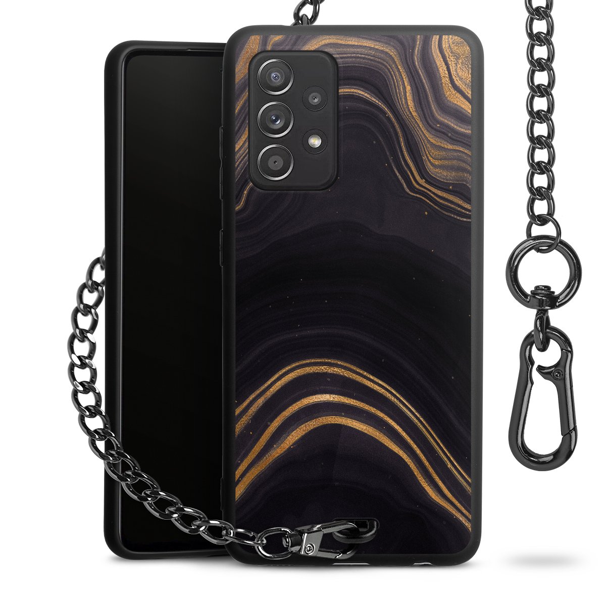 • Mattschwarze Handyhülle mit Metallkette