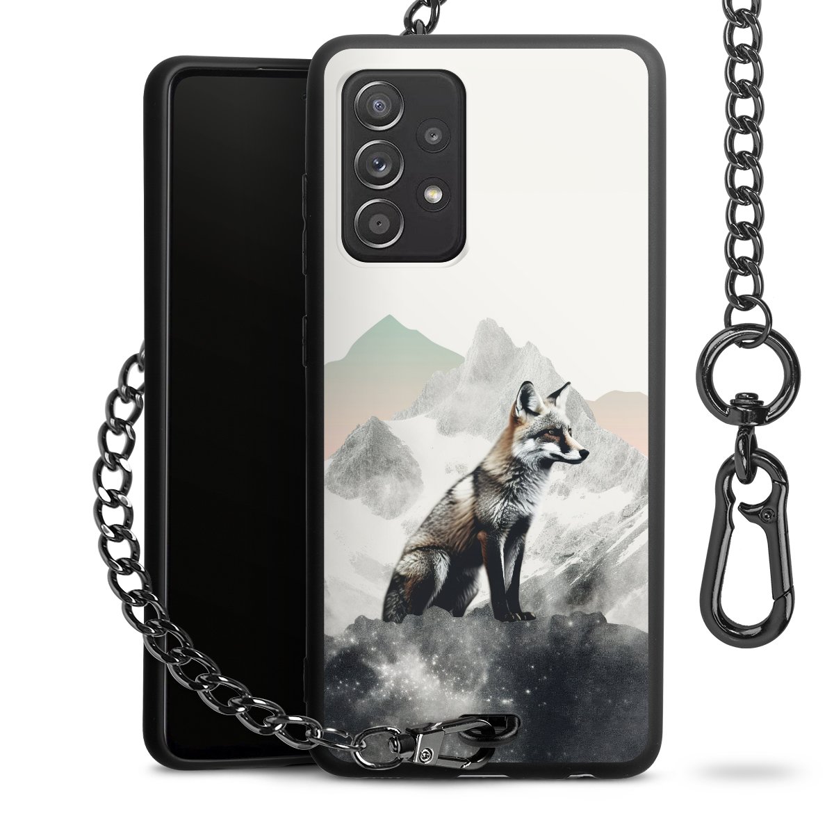• Mattschwarze Handyhülle mit Metallkette
