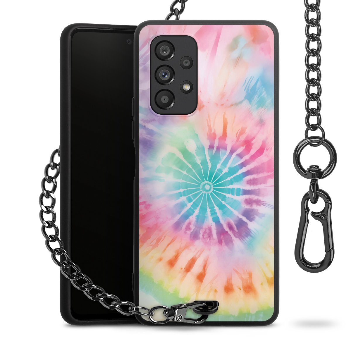 • Mattschwarze Handyhülle mit Metallkette