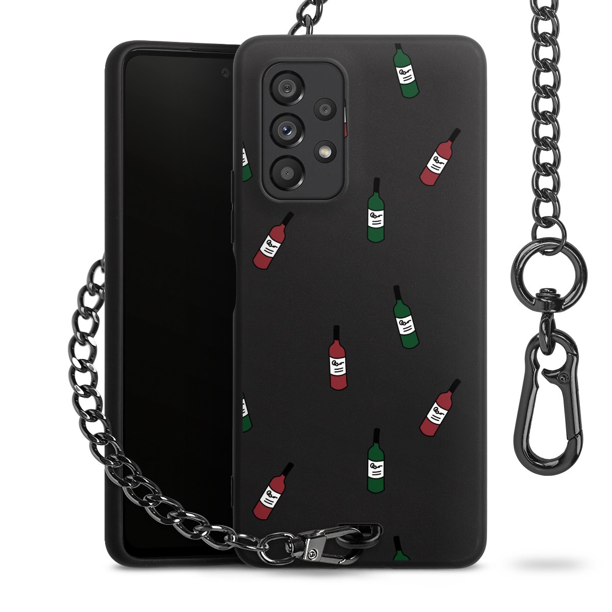 • Mattschwarze Handyhülle mit Metallkette