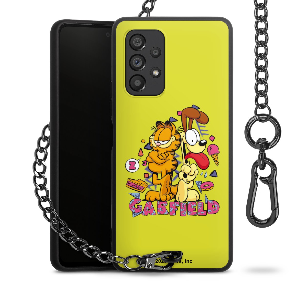 - Mattschwarze Handyhülle mit Metallkette