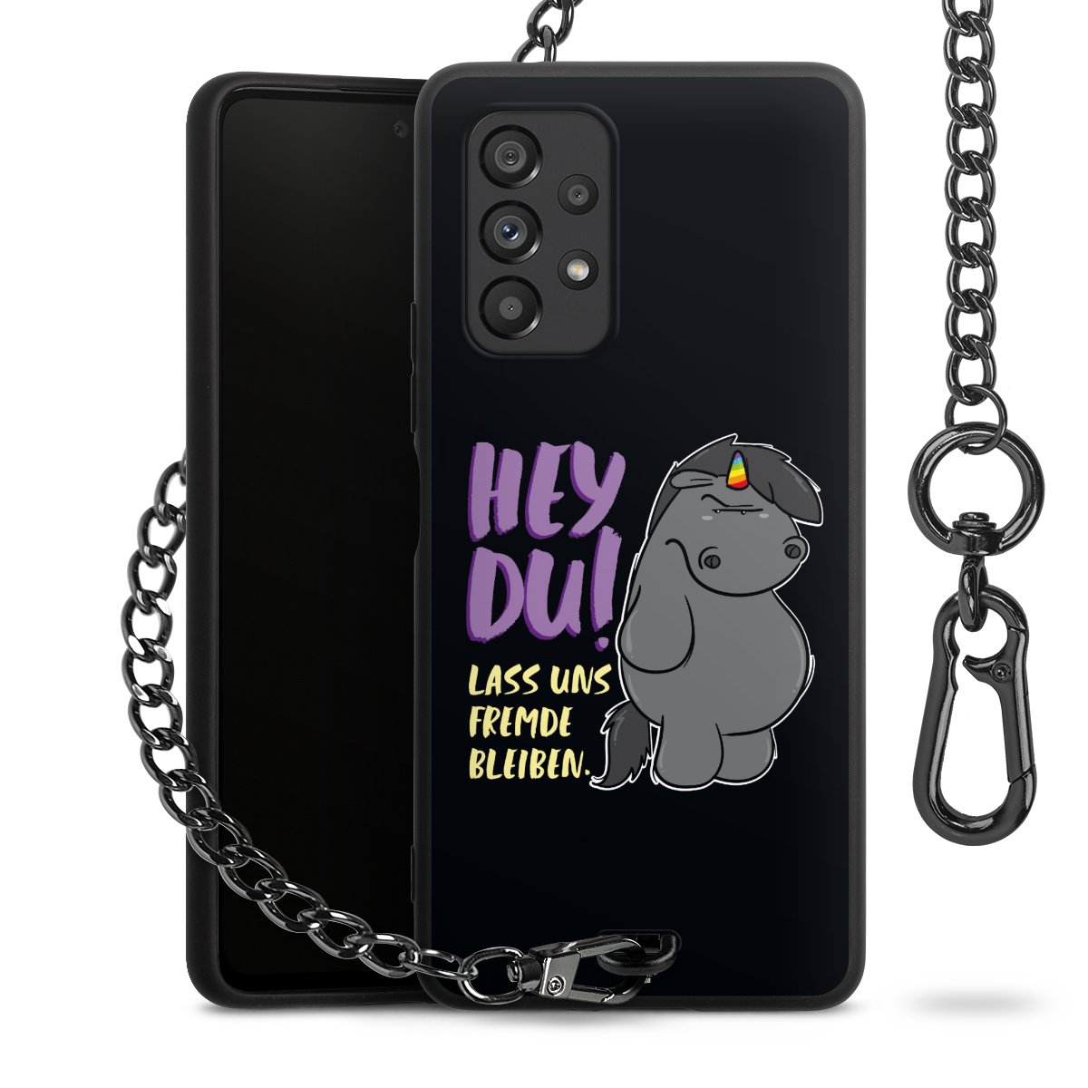 • Mattschwarze Handyhülle mit Metallkette
