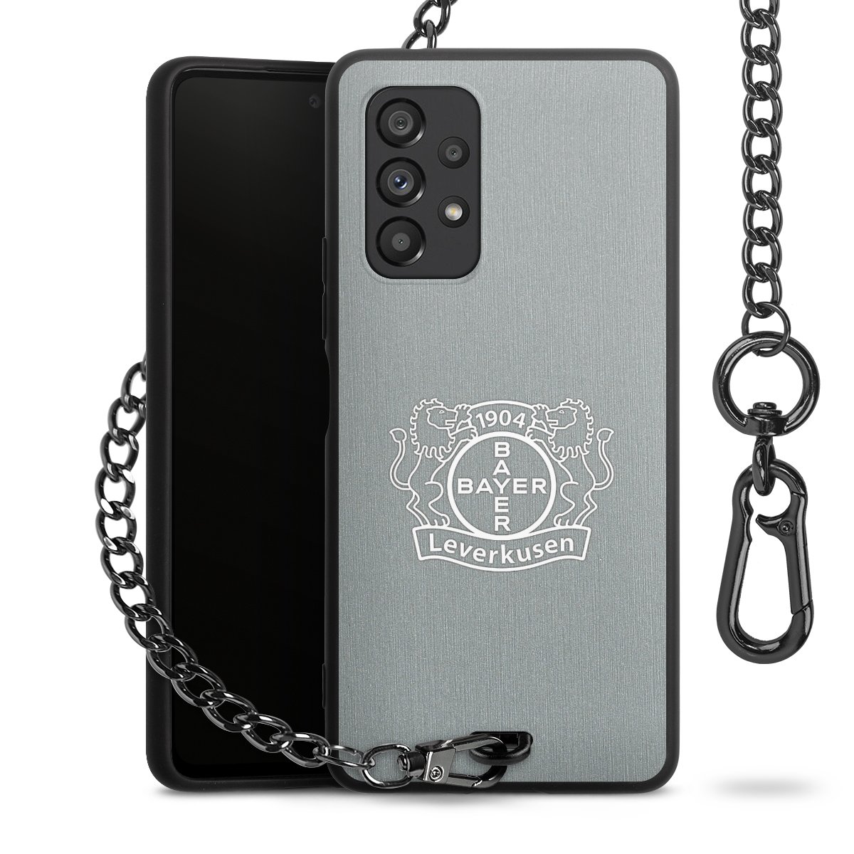 Die mattschwarze Silikon-Handyhülle besteht aus robustem TPU (thermoplastisches Polyurethan). Sie ist flexibel und schützt Dein Smartphone vor Stößen und Kratzern. Die Kette sowie der Karabinerhaken sind aus Metall in Gunmetal-Optik gefertigt. Für dieses Produkt kommen ausschließlich TÜV-geprüfte Materialien zum Einsatz.