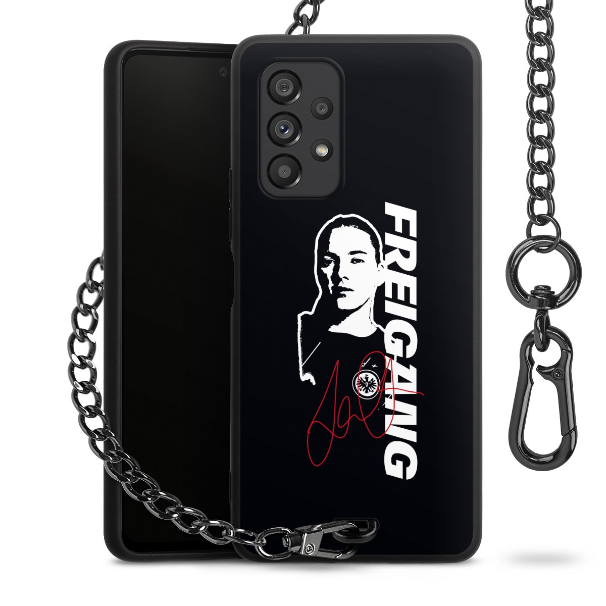 • Mattschwarze Handyhülle mit Metallkette