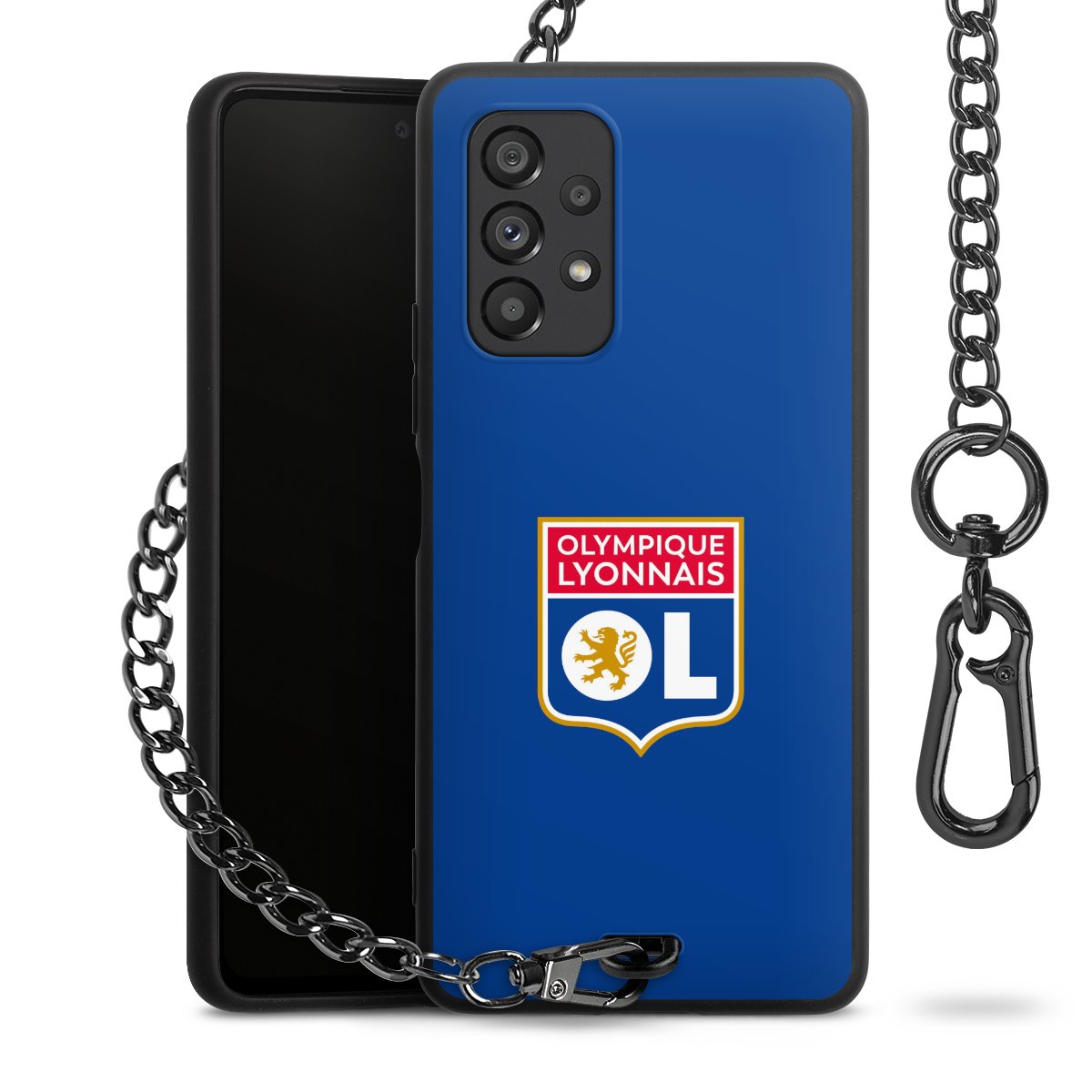 • Mattschwarze Handyhülle mit Metallkette