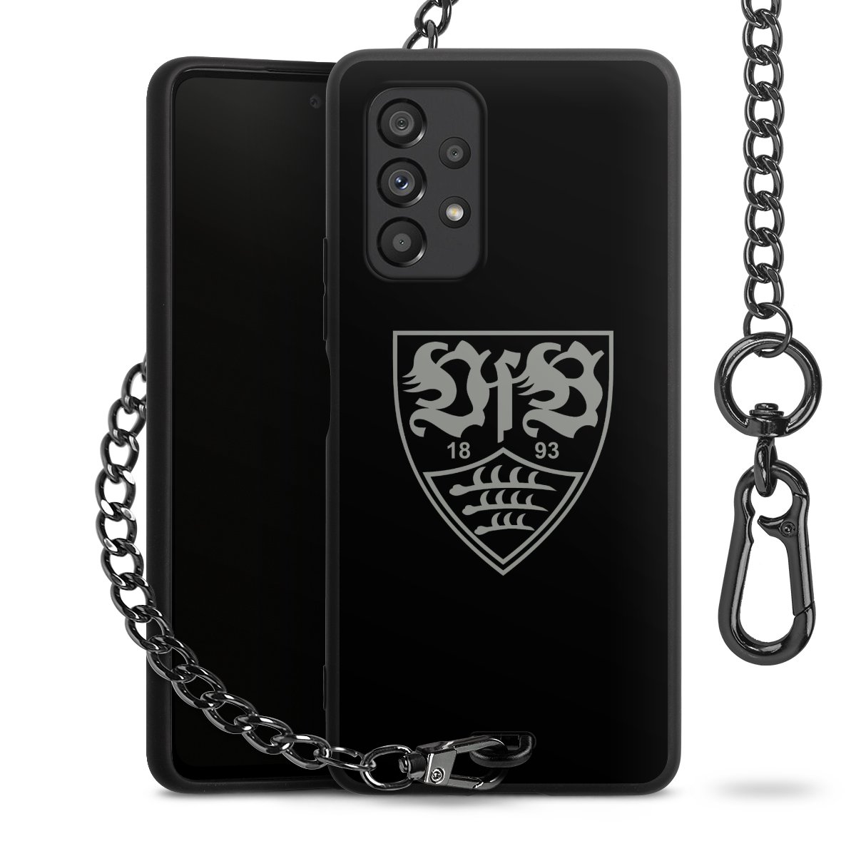 • Mattschwarze Handyhülle mit Metallkette