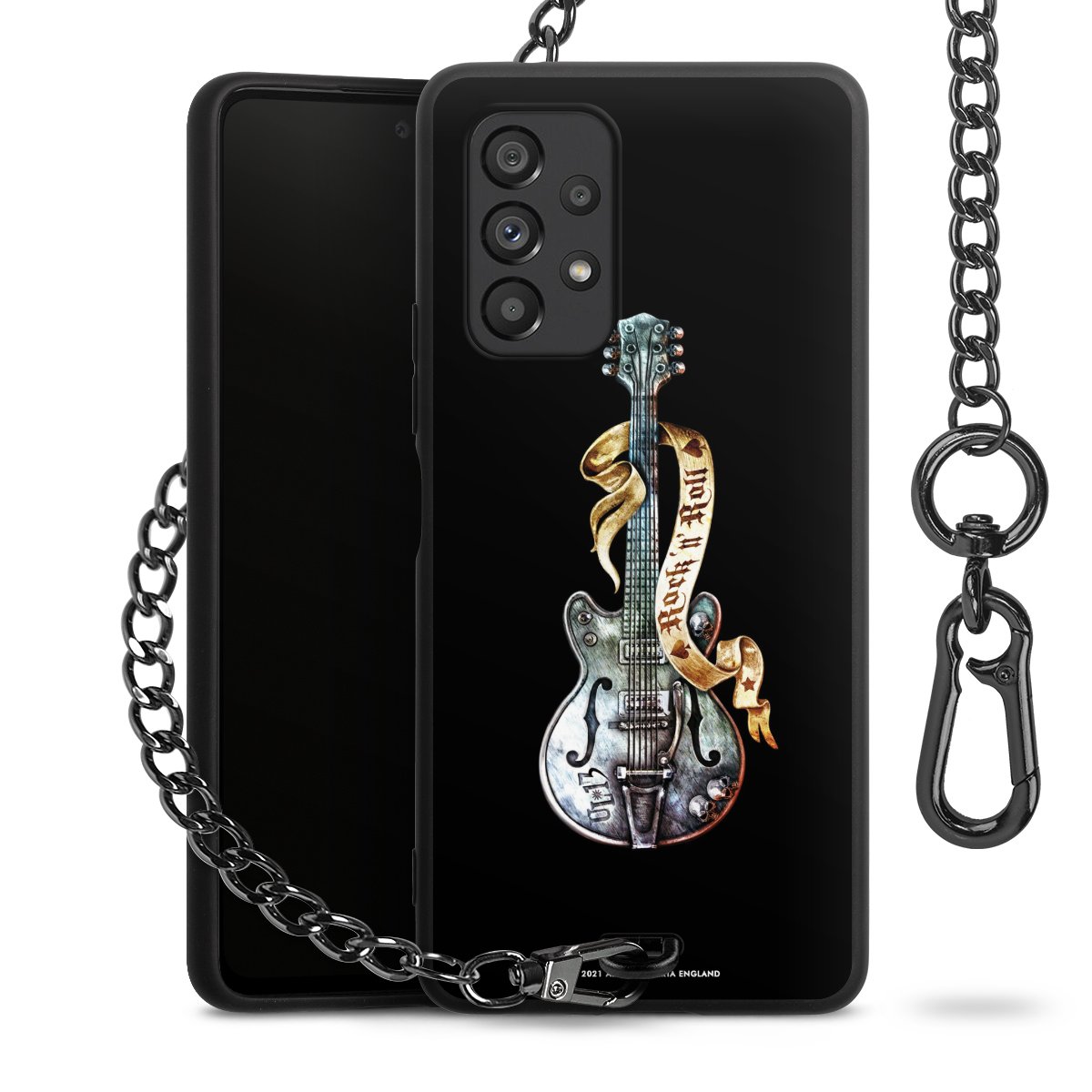 Die Handyhülle verfügt über eine mittig am unteren Rand platzierte Öse, an der die Metallkette stabil befestigt ist. Bestelle die Hülle einfach für Dein Smartphone-Modell, dann passt sie wie angegossen und Du brauchst sie bloß einmal anzudrücken. Handy in die Tasche, Karabiner an den Hosenbund – schon kann die Party starten.