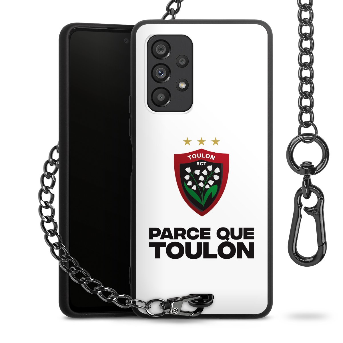 - Mattschwarze Handyhülle mit Metallkette