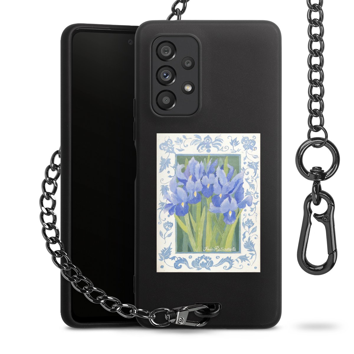 - Mattschwarze Handyhülle mit Metallkette