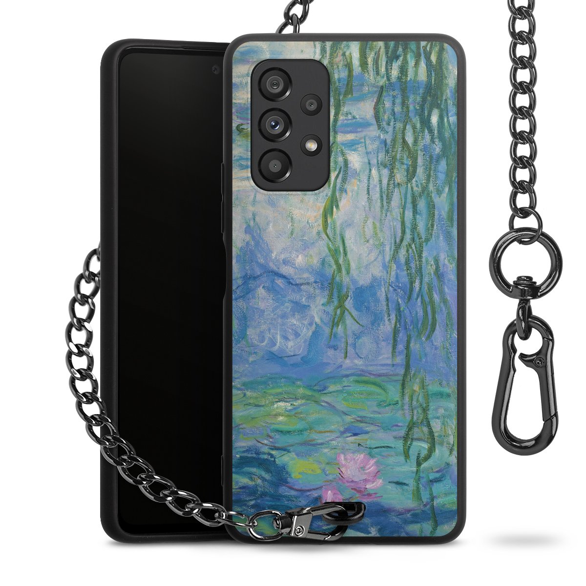 • Mattschwarze Handyhülle mit Metallkette