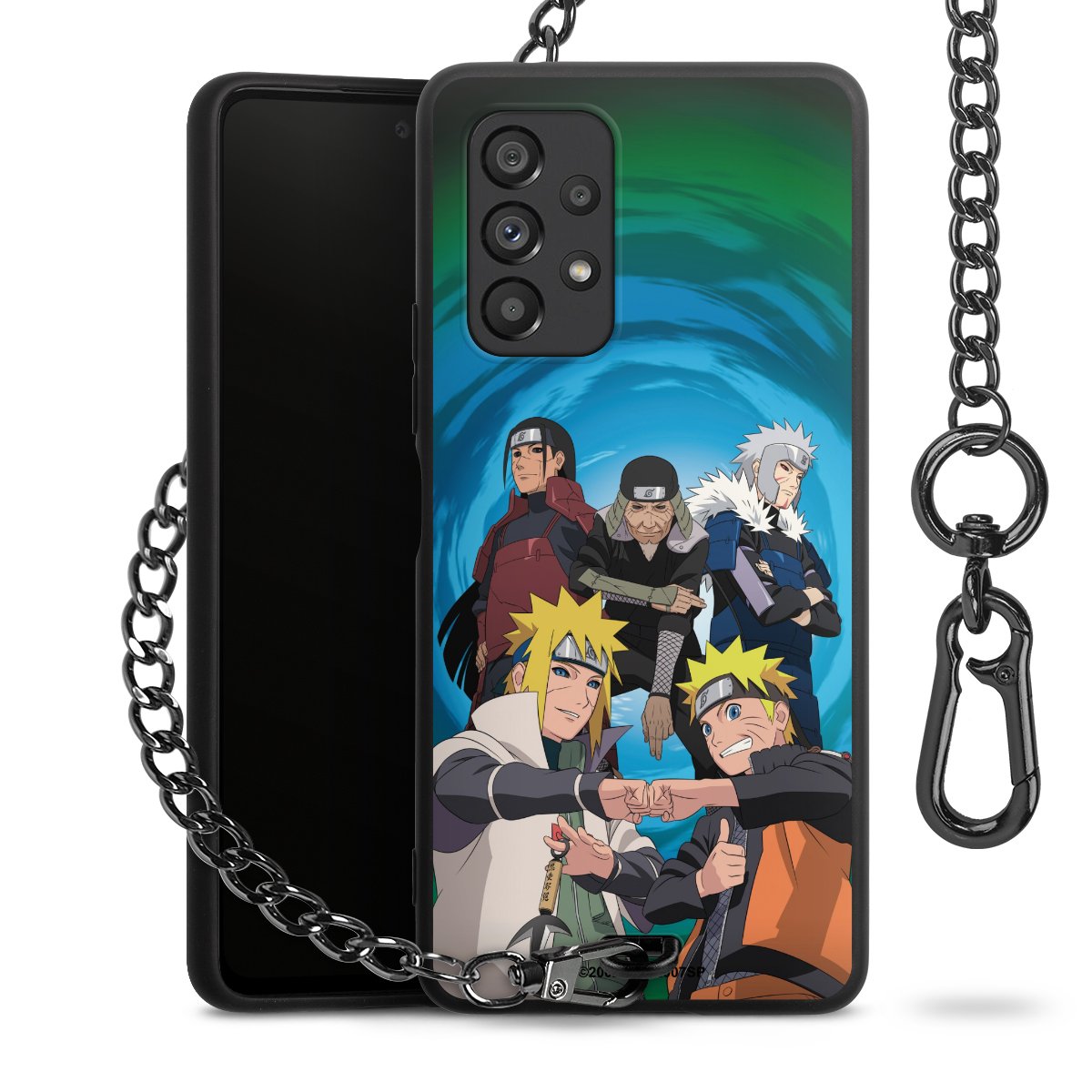 • Mattschwarze Handyhülle mit Metallkette
