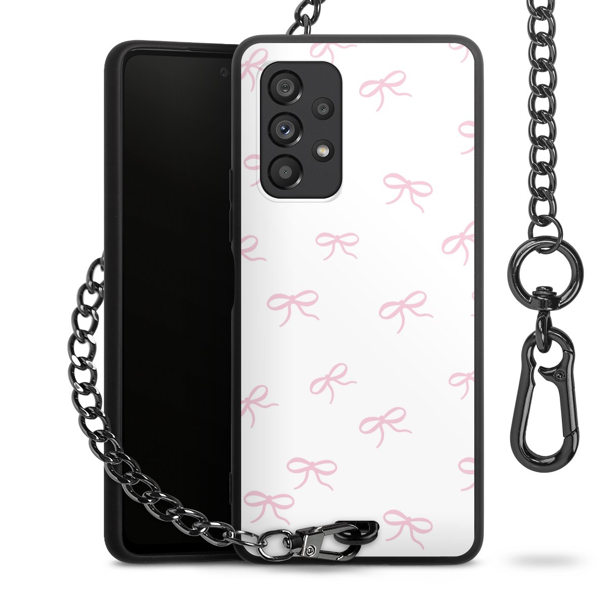 - Mattschwarze Handyhülle mit Metallkette