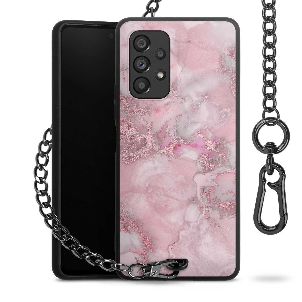 • Mattschwarze Handyhülle mit Metallkette