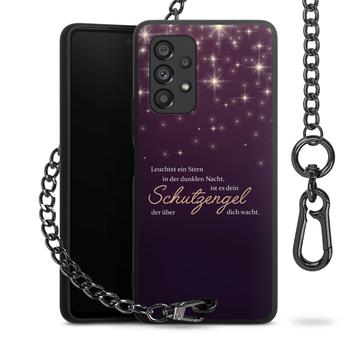 - Mattschwarze Handyhülle mit Metallkette