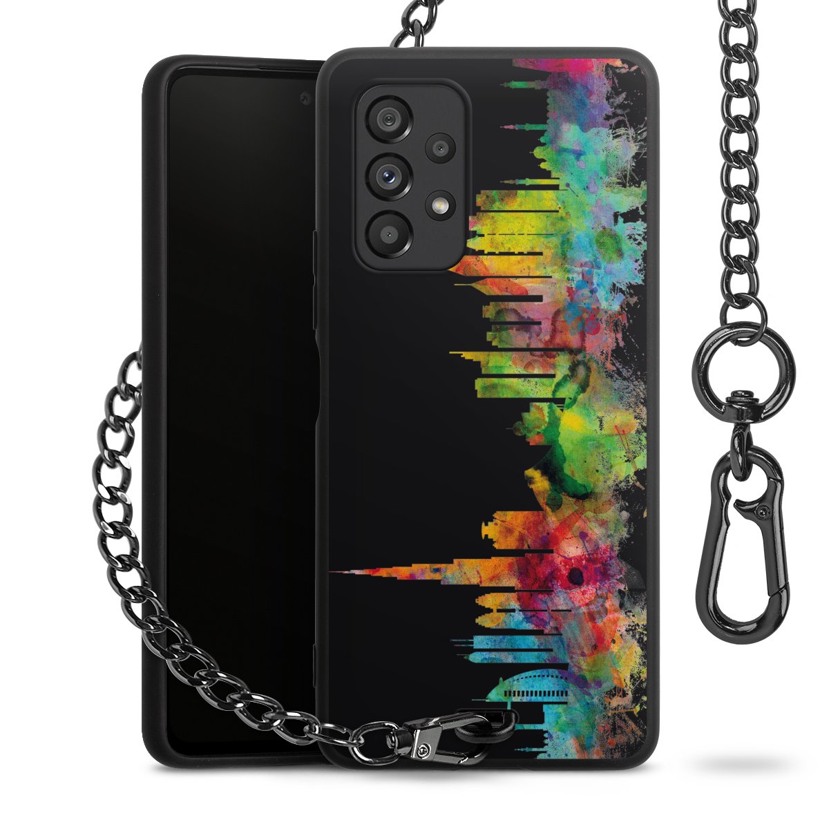 • Mattschwarze Handyhülle mit Metallkette