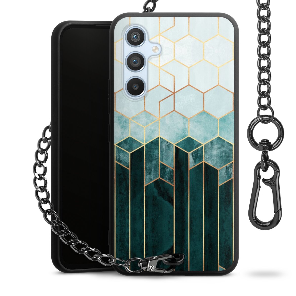 • Mattschwarze Handyhülle mit Metallkette
