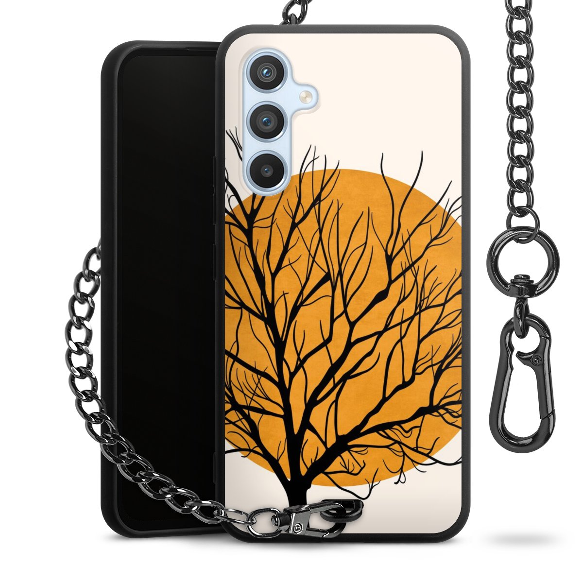 • Mattschwarze Handyhülle mit Metallkette