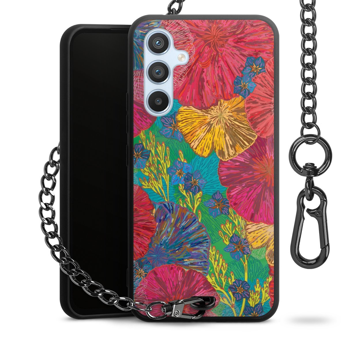 • Mattschwarze Handyhülle mit Metallkette