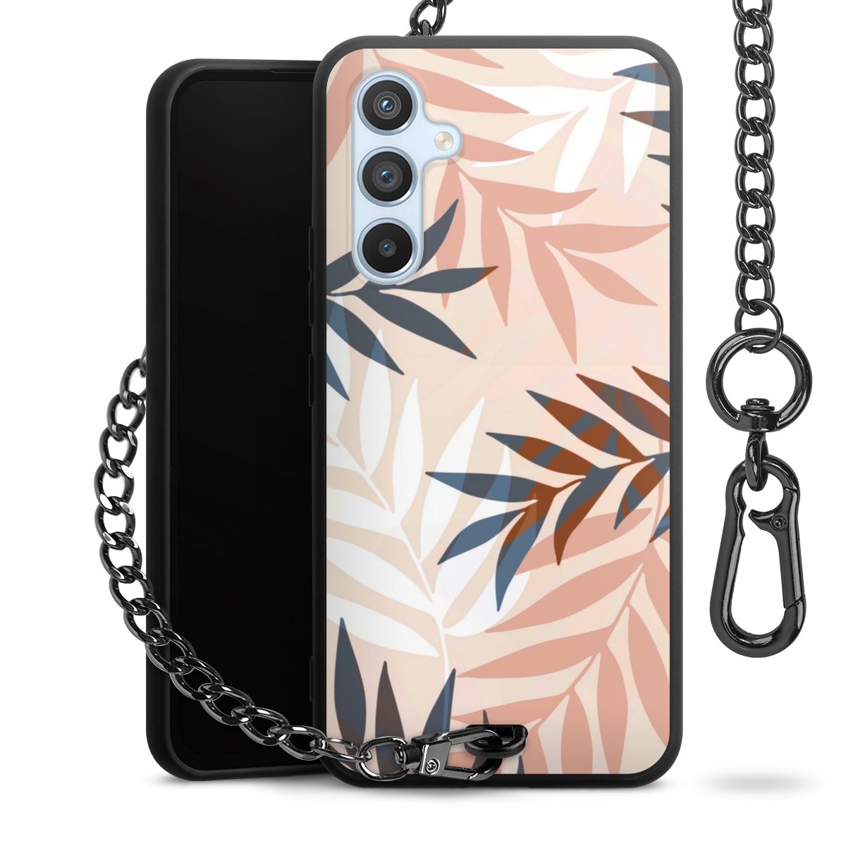 • Mattschwarze Handyhülle mit Metallkette